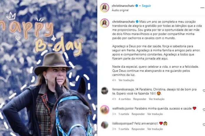 “Chris, que Deus e Maria te guiem sempre, que você seja muito feliz e abençoada. Que esse novo ciclo lhe traga novas conquistas e grandes realizações. Feliz aniversário, parabéns! Aproveite seu dia”, desejou outra seguidora.