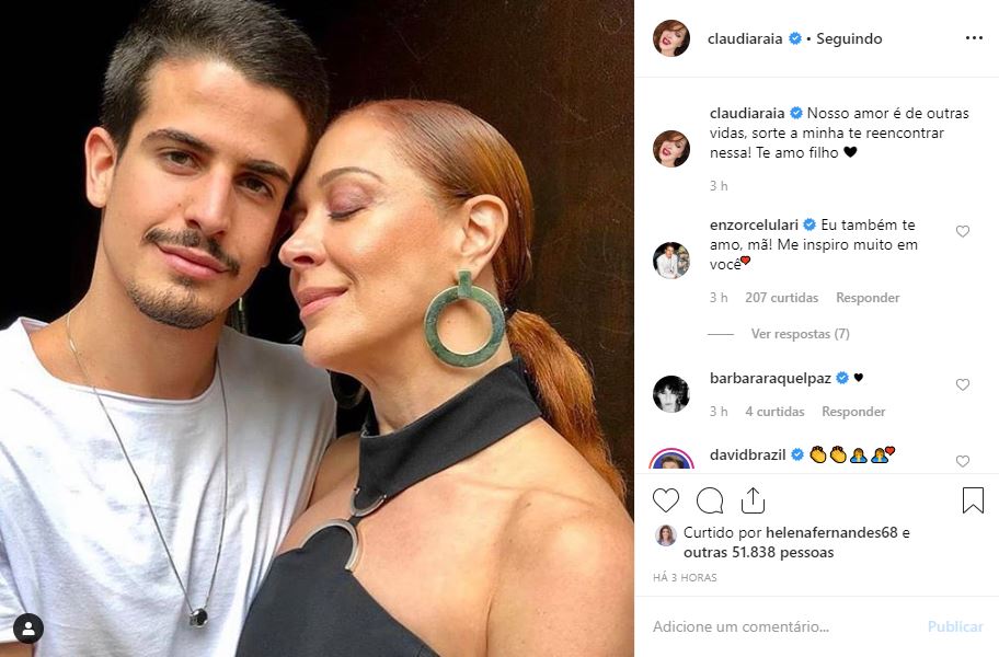 Nos comentários da publicação, Enzo respondeu ao carinho da mãe. “Eu também te amo, mã! Me inspiro muito em você”.
