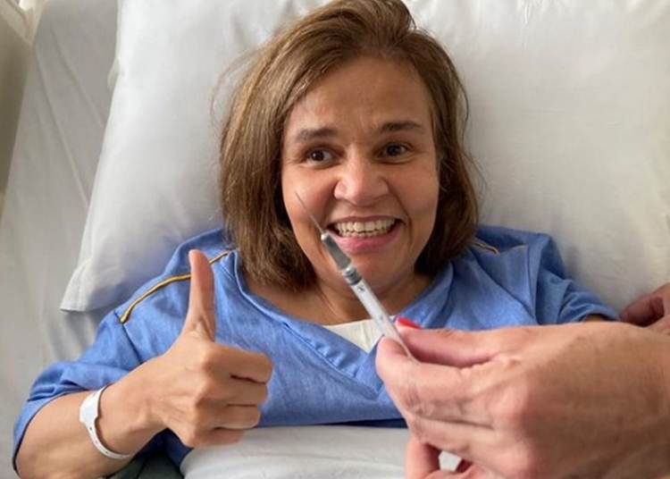 Depois de deixar a UTI, Claudia Rodrigues recebeu a segunda dose da vacina contra a Covid-19 nesta segunda-feira (19). Em caso especial, a imunização da atriz foi adianta em cerca de um mês, já que a segunda dose seria apenas em agosto.