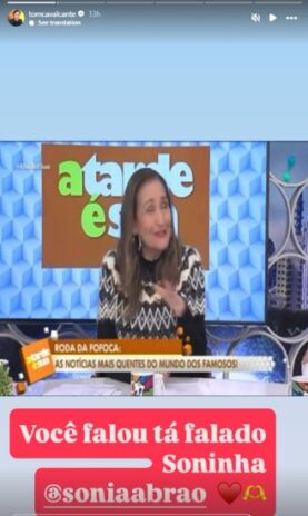 “Se você falou, está falado, Soninha!”, respondeu o titular do ‘Acerte Ou Caia’, diretamente dos stories de seu Instagram, com direito a um emoji de coração, compartilhando um vídeo de Sonia Abrão dizendo que o seu caso não tem ligamento algum com a polêmica que a atração da Record foi envolvida nos últimos dias.