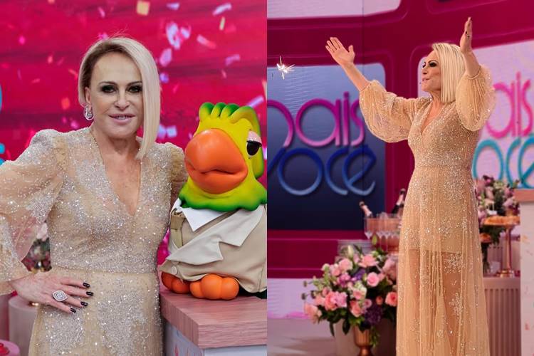 Look 2 – Ana Maria surgiu toda de dourado para o show 60 anos da Globo.