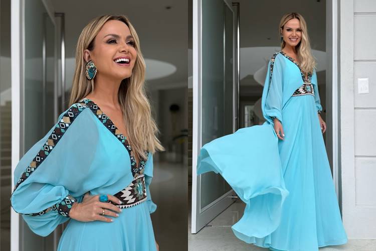Look Azul –E lá vamos nós celebrar o amor”, escreveu Li na publicação onde exibiu seu look escolhido para o casamento Ana Maria Braga e Fabio Arruda.