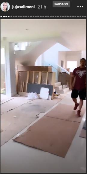 “Dá uma olhada em como estão as coisas! Na verdade está tudo bem bagunçado, mas está quase finalizando. O mais pesado já foi”, disse ela em seu Stories. Logo depois, Juju aproveitou a ocasião para exibir um pouco mais do andar superior, que conta com três suítes e dois closets, um para ela e outro para Felipe.