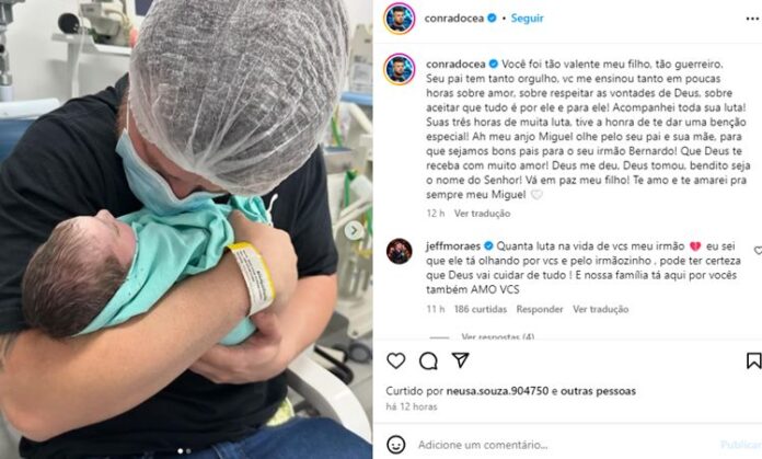 Como o Área Vip te informou, na última segunda-feira, 3, Conrado realizou uma homenagem forte de despedida para Miguel. O cantor expressou seu orgulho pelo o pequeno e afirmou que ele foi muito guerreiro ao lutar pela vida.