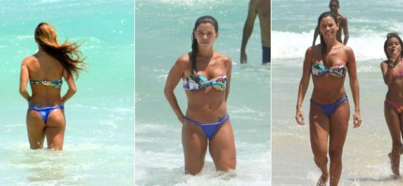Dani Bananinha esteve na quinta (4), na praia do Pepe, no Rio de Janeiro. Exibindo um corpão, a assistente de palco do Caldeirão do Huck, aproveitou para mergulhar e colocar o bronzeado em dia.
