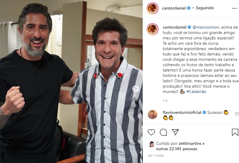 Através das redes sociais, Daniel fez questão de agradecer ao apresentador Marcos Mion, a quem chamou de amigo, exaltando as qualidades e o profissionalismo do famoso.