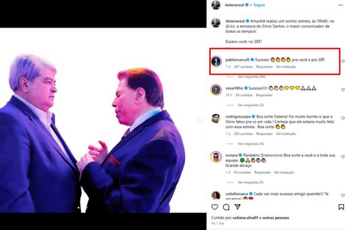 Nos comentários, o jornalista recebeu o apoio de diversos internautas, incluindo Pablo Marçal, com quem acabou protagonizando algumas polêmicas durante debates pela prefeitura de São Paulo. “Sucesso para você e para o SBT”, desejou o empresário.