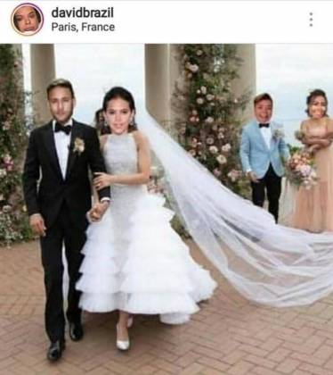 Em uma montagem, ele exibiu Bruna Marquezine e Neymar se ‘casando’. David e a irmã do jogador, Rafaella Santos também estão na imagem, como padrinhos.