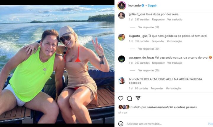 No entanto, os comentários seguiram: “Leonardo de saco cheio de tirar foto”, brincou mais um. “Tá que nem geladeira de pobre, só tem ovo!”, disparou outro. “Vai passando na sua rua o carro do ovo!”, escreveu mais um fã do sertanejo.