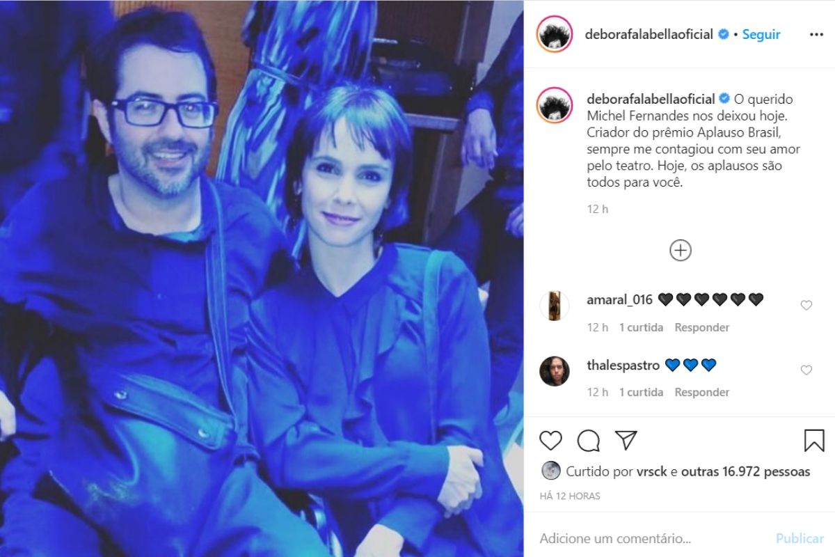 “O querido Michel Fernandes nos deixou hoje. Criador do prêmio Aplauso Brasil, sempre me contagiou com seu amor pelo teatro. Hoje, os aplausos são todos para você” disse a atriz da TV Globo na publicação. Veja abaixo: