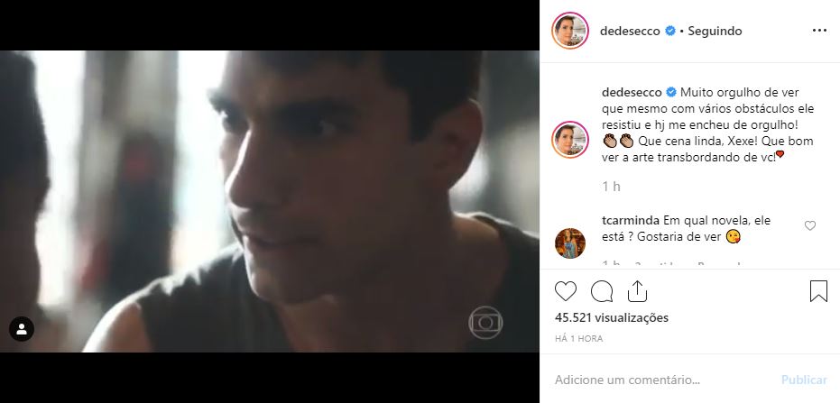 “Muito orgulho de ver que mesmo com vários obstáculos ele resistiu e hj me encheu de orgulho! 👏🏼👏🏼 Que cena linda, Xexe! Que bom ver a arte transbordando de vc!”, disse Secco.