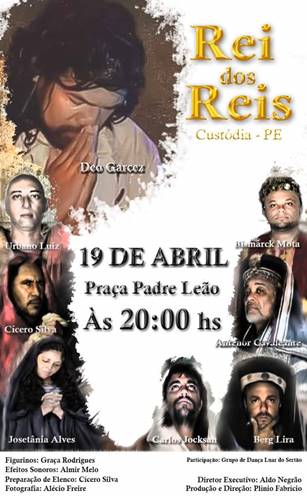 Deo Garcez viverá Jesus Cristo pela quinta vez no espetáculo da Paixão de Cristo, “Reis dos Reis”, com direção e roteiro de Plínio Fabrício em Custódia, no maior teatro ar livre do sertão pernambucano, que todo ano atrai um público de sete mil pessoas. O elenco é composto por atores da cidade e por mil figurantes.