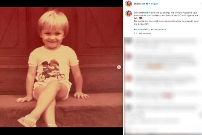 A primeira a mostrar uma imagem da infância foi Ana Hickmann. A apresentadora aproveitou a Semana da Criança para dividir com seus seguidores cliques do passado, nos quais aparece ao lado dos irmãos e amigos.