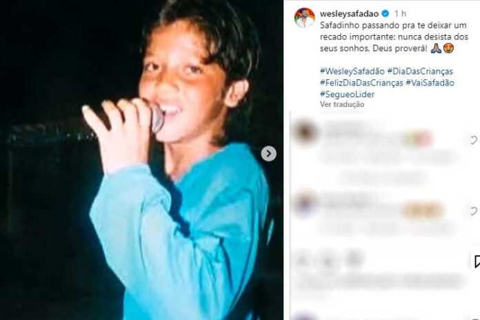 Wesley Safadão também resgatou cliques da infância para celebrar a data, brincando com o público ao se chamar de “Safadinho”. “Safadinho passando pra te deixar um recado importante: nunca desista dos seus sonhos, Deus proverá!”, afirmou.