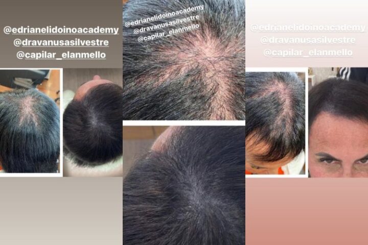 A mãe do vereador Thammy Miranda explicou para seus seguidores que o tratamento incluiu dermopigmentação, além de aplicações de injeções no couro cabeludo. Com os fios recuperados, Gretchen brincou ao dizer que já era possível até fazer topete com seu cabelo natural. O aspecto vermelho na pele, segundo ela, diz respeito à recente aplicação das injeções, e em breve a coloração normal deve ressurgir. “Fora a dermopigmentação, estou fazendo um tratamento com injeções. Recuperei meu cabelo, estou até fazendo topete. A parte vermelhinha atrás é porque ela acabou de aplicar”, explicou a dançarina.