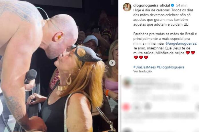 Nas imagens, Diogo faz questão de se agachar para beijar a mãe, demonstrando todo o seu carinho. Na legenda, o cantor aproveitou para celebrar a data especial, mandando também um recado a todas as mães do país.
