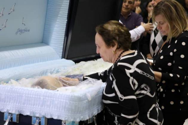 Dona Maria do Céu, de 90 anos, se despediu do filho, Gugu Liberato, durante o velório do apresentador que aconteceu nesta quinta-feira (28), na Assembleia Legislativa de São Paulo, no Ibirapuera, na Zona Sul.