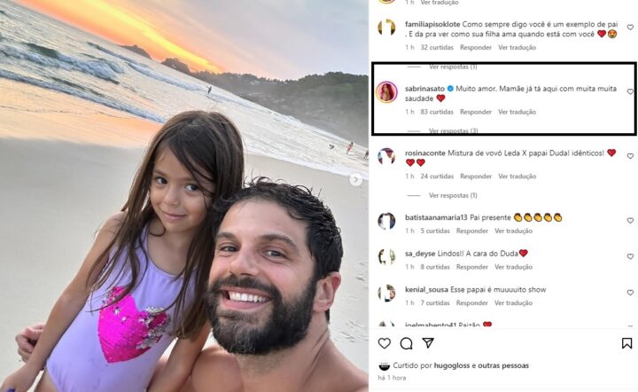 “Está cada vez mais linda”, destacou uma internauta. “Amo ver a cumplicidade desses dois, que nada atrapalhe isso no futuro. Que Deus os abençoe sempre, lindo esse amor”, elogiou outra. Até mesmo Sabrina Sato aproveitou para fazer um comentário, dizendo que ama muito a filha e está com saudade. “Muito amor. Mamãe já tá aqui com muita saudade”, disse a apresentadora.
