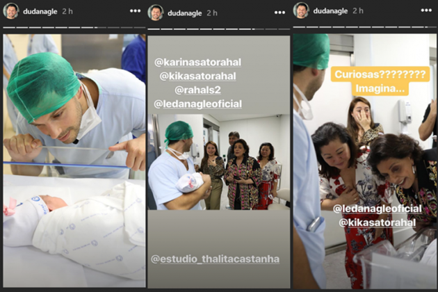 Nesta sexta-feira, 30, Duda mostrou mais alguns detalhes do nascimento de Zoe. Além de mostrar o pezinho da herdeira, ele também mostrou a reação de alguns membros da família, como as avós Leda Nagle e Kika Sato, além de outros membros da família ao conhecerem a menina.
