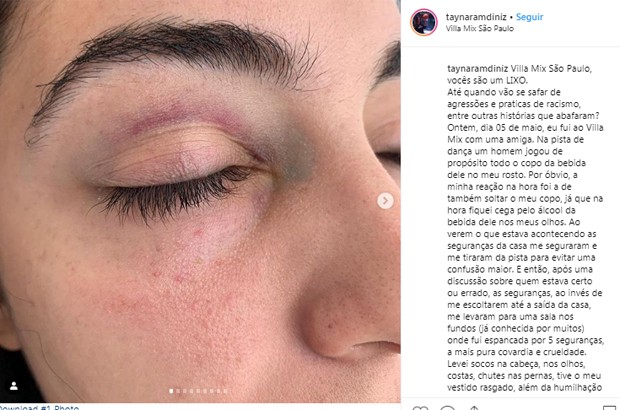 Segundo a jovem, a confusão começou quando um homem jogou um copo de bebida em seu rosto quando estavam na pista de dança. “Por óbvio, a minha reação na hora foi a de também soltar o meu copo, já que na hora fiquei cega pelo álcool da bebida dele nos meus olhos. Ao verem o que estava acontecendo as seguranças da casa me seguraram e me tiraram da pista para evitar uma confusão maior”, escreveu ela.