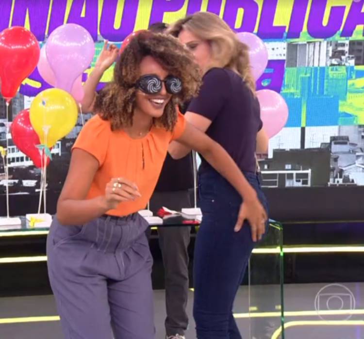 Depois, os atores tiveram que estourar 20 balões durante cinco segundo, mas claro que não seria tão fácil assim, e eles precisariam fazer isso com os olhos vendados. Após realizarem o desafio, Sheron, que ainda estava sem conseguir enxergar nada, acabou apalpando o bumbum da apresentadora Fernanda Gentil.
