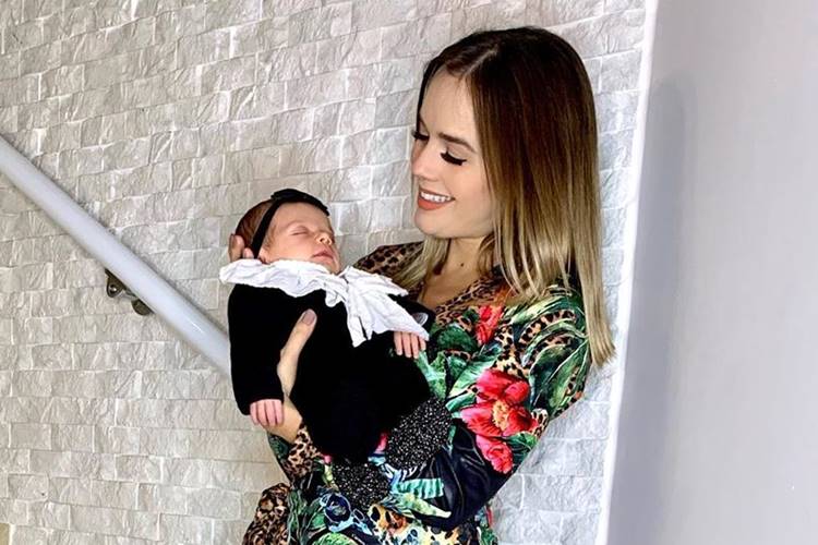 Sertaneja Thaeme mostra mudança da filha Liz após dois meses do nascimento