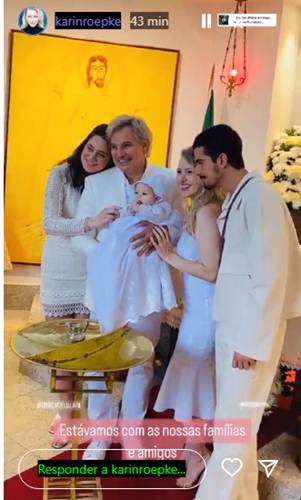 Nesta sexta-feira (10), Edson Celulari e Karin Roepke reuniram a família para uma ocasião muito especial. O casal batizou Chiara, primeira filha do casal. A cerimônia aconteceu em uma capela aos pés do Cristo Redentor, no Rio de Janeiro.