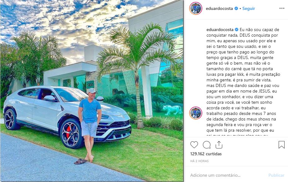 O cantor Eduardo Costa impressionou seus seguidores no início da noite desta quinta-feira (25) ao posar ao lado de um carro de luxo.