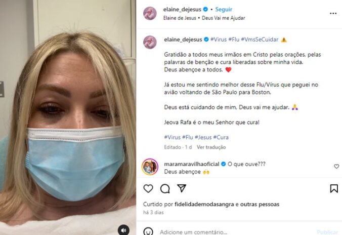 Três dias antes do post acima, a equipe de Elaine se manifestou sobre o estado de saúde da cantora pelas redes, afirmando: “Viemos por meio desta nota pedir orações a igreja do Senhor em favor da saúde da cantora Elaine de Jesus que se encontra debilitada“, dizia parte do comunicado.