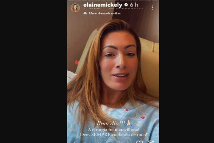 Elaine Mickely usou seu Stories no Instagram nesta terça-feira (02) para tranquilizar seus seguidores após realizar uma cirurgia de 5 horas para a retirada do útero. De acordo com a atriz, seu útero estava de 3 a 5 vezes maior do que o normal devido a um mioma.