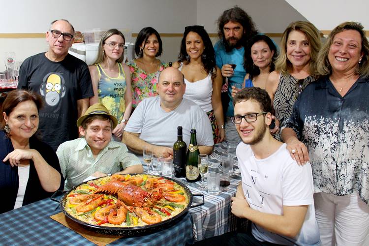 Entre os convidados estavam Bárbara Bruno (Fiorina), Mira Haar (Dona Nina), Tânia Bondezan (Marina/Antonella), Giovanni Venturini (Nico), Maximiliana Reis (Berta), Ariel Moshe (preparador de elenco), João Batista (Diretor) e as produtoras Claudia Dias e Simone Boing, que saborearam uma deliciosa ‘Paella’, preparada pelo ator com a colaboração do seu filho, Pedro Paulo.