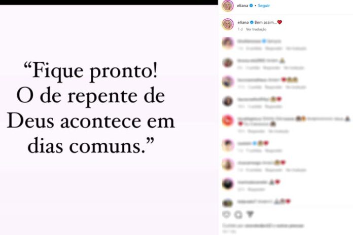 “Fique pronto! O de repente de Deus acontece em dias comuns”, destacou, recebendo o carinho de seus seguidores nos comentários. “Te admiro”, afirmou uma internauta falando sobre sua inspiração pela comunicadora. “Quando menos esperamos, ele nos surpreende da melhor forma. Da forma dele e no tempo dele”, declarou outro.