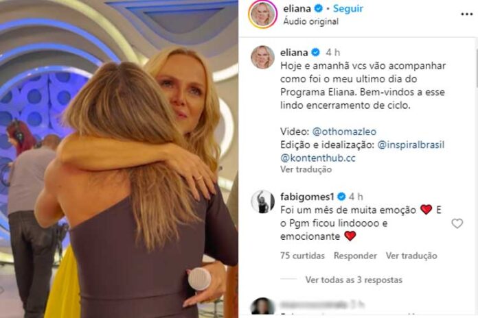 “A particularidade desses meses todos é que eu fiquei muito emocionada em todos os programas. E eu costumo dizer que eu chorei um pouquinho a cada dia para chegar nesse dia com força, com a fé que vocês já sabem que eu tenho, para fazer um programa com dignidade, sabe? Para não ficar só chorando, chorando e chorando”, relatou Eliana emocionada.