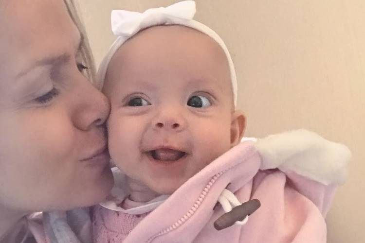 Em seu Instagram, a apresentadora postou uma foto com a filha no colo, toda vestida de cor de rosa.