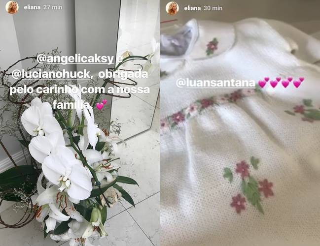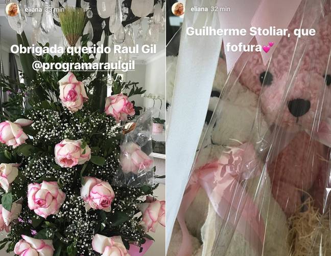 Ela também dividiu com seus seguidores as flores enviadas por Raul Gil e outras por Luciano Huck e Angélica. “Obrigada pelo carinho com a nossa família”, escreveu a comunicadora.