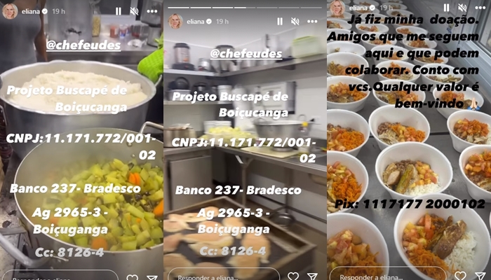 Sendo assim, Eliana compartilhou alguns vídeos que exibem colaboradores tentando amenizar a dor e o sofrimento daqueles que sobreviveram com fortes chuvas na região, há uma semana.