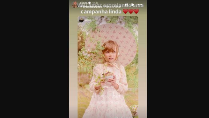 Eliana reagiu ao primeiro trabalho da filha, Manuela, de 8 anos, como modelo para uma marca infantil. Em seu Stories no Instagram, nesta sexta-feira (13), a apresentadora não disfarçou a felicidade ao ver a conquista da herdeira.