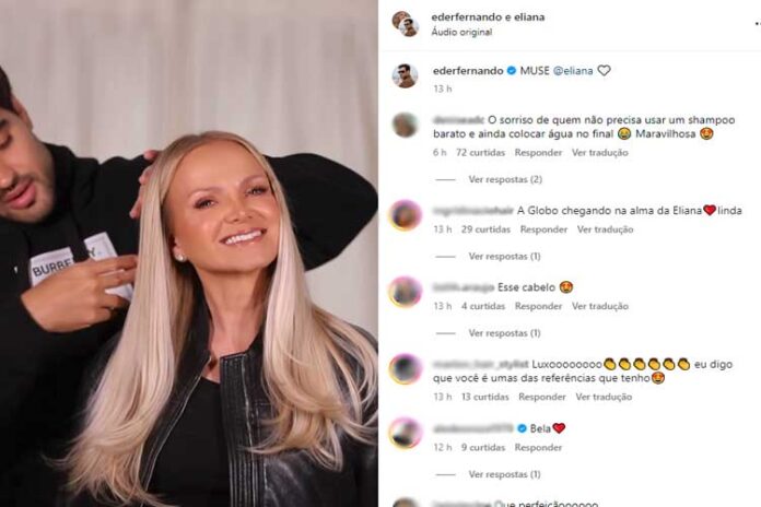 Com a ajuda do cabeleireiro Eder Fernando, a apresentadora mudou a tonalidade do cabelo. “A diva tem nome! Eliana”, afirmou uma fã. “Apaixonada por esse cabelo”, disse outra. “Belíssima”, elogiou mais uma internauta, comentando o novo visual da famosa.