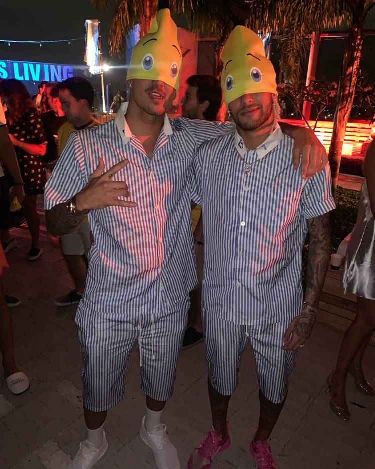 Em festa a fantasia, Neymar e Gabriel Medina usam look inusitado