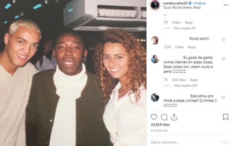 “Olha esse TBT, a gente se encontrou no Olimpo, casa de shows aqui no Rio, era show da Alcione”, disse Nando na legenda.