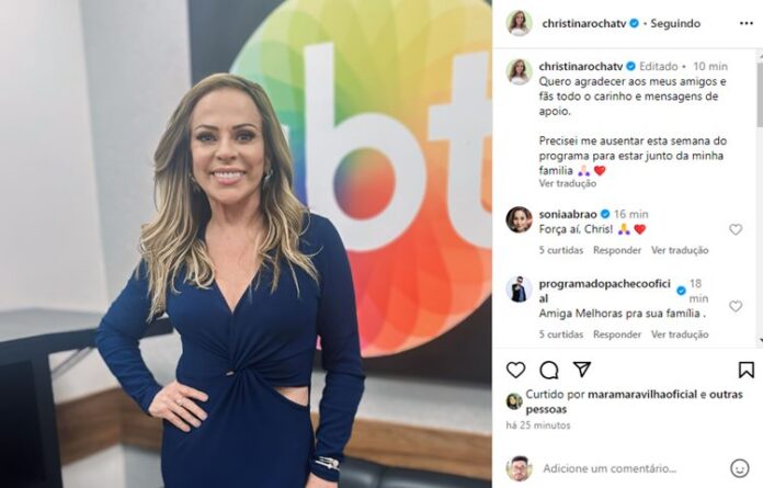 Nas redes sociais, a apresentadora também comentou sobre a sua ausência, após muitos fãs questionarem por onde ela andava: “Quero agradecer aos meus amigos e fãs todo o carinho e mensagens de apoio. Precisei me ausentar esta semana do programa para estar junto da minha família“, escreveu ela, posando em uma foto com a logo do SBT ao fundo.