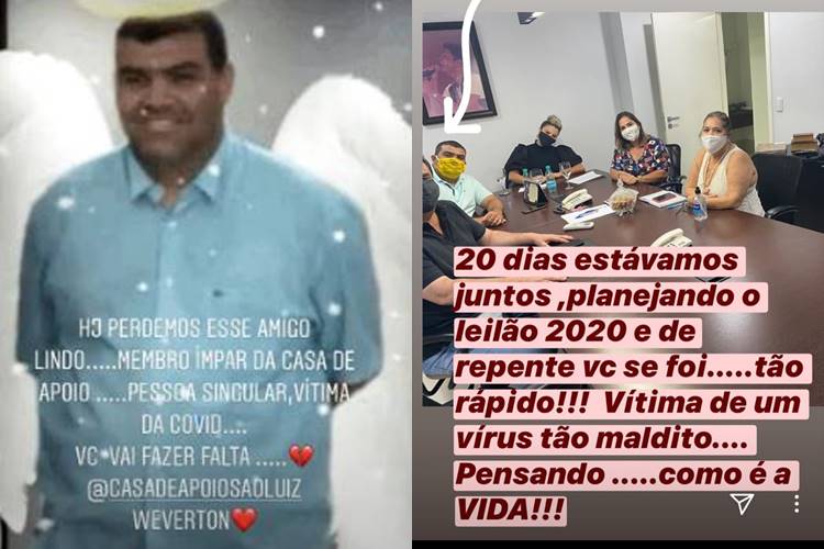 “Hoje perdemos esse amigo lindo, membro impar da casa de apoio. Pessoa singular, vítima da COVID. Você vai fazer falta, Weverton”, escreveu ela ao publicar uma foto do amigo.
