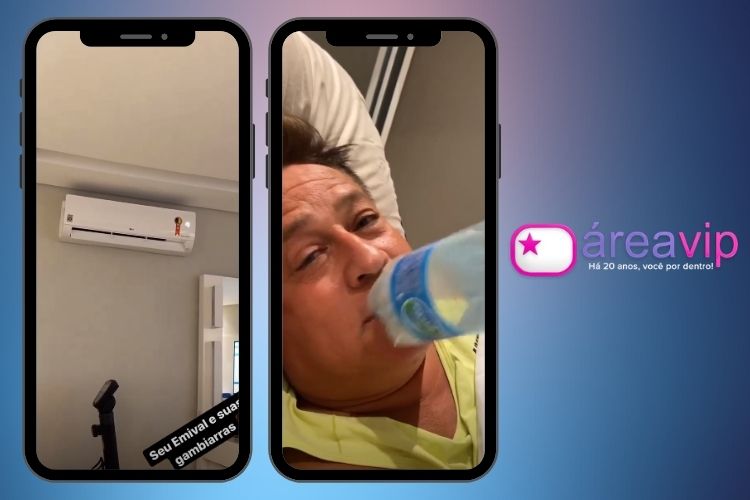 Ele finalmente comprou um aparelho novo. A sua esposa, Poliana Rocha, contou tudo no vídeo compartilhado. “Gente, ar-condicionado novo. Tivemos que comprar hoje devido as birras. De quem? Emival”, disse ela. O artista, em seguida, falou sobre isso: “Gambiarras, gambiarras. A gente teve que trocar. Ela não gosta das gambiarras”. Veja na imagem abaixo separada pela equipe de arte do Área VIP: