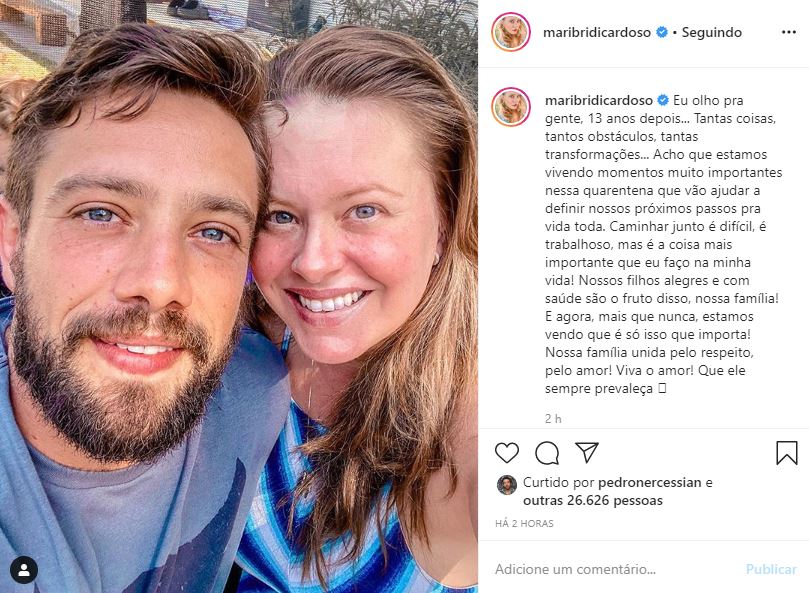 Mari falou sobre com durante esse momento de pandemia ela deu ainda mais valor a tudo que eles construíram juntos. “E agora, mais que nunca, estamos vendo que é só isso que importa! Nossa família unida pelo respeito, pelo amor! Viva o amor! Que ele sempre prevaleça”, finalizou.