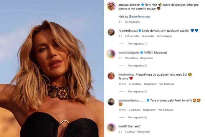 Nos comentários, Siebert recebeu vários comentários elogiando a mudança. “Linda demais com qualquer cabelo!”, declarou Roberto Justus apaixonado. “Amei! Moderna”, disse outra. “Maravilhosa de qualquer jeito”, afirmou outra seguidora.