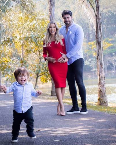 Rodrigão também manifestou sua alegria através do Instagram: “O mais lindo filme que ja vivenciamos em nossas vidas, esta passando novamente em nossos olhos. Nos assistimos ate agora sozinhos, mas chegou a hora de dividir com vocês a noticia de mais um presente de Deus que está a caminho.. E o melhor de tudo é que só faltam 4 meses pra esse presentão chegar! E vamo que vamo pq minha meta de vida é encher a casa!!!”