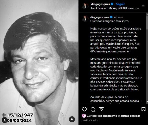 Ele ainda comenta a respeito do casamento entre o pai e a sua então companheira, que viveram juntos por mais de 50 anos: ”Ao lado dele, por 55 anos de comunhão, esteve sua amada esposa . Juntos, construíram não apenas uma família, mas um legado de amor que transcende o tempo. A parceria deles era uma sinfonia de compreensão, paciência e cumplicidade, provando que o verdadeiro amor é capaz de superar todas as tempestades”, disse. Dando continuidade ao seu relato, o ex-BBB também destaca que a dor da perda é grande e deseja que seu pai o guie neste momento difícil.