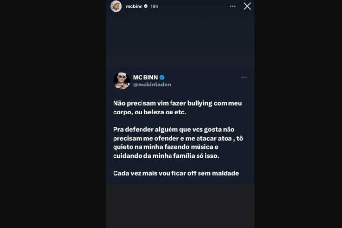 Após receber inúmeros ataques em relação à sua aparência no X (antigo Twitter), MC Bin Laden, que após o “BBB24” passou a se chamar apenas MC Binn, desativou o seu perfil.