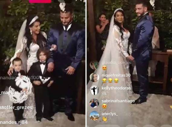 Os filhos da ex-sister Gabriel e Pietro foram os responsáveis por levar as alianças ao altar. Eles entraram ao som de ‘Missão Impossível’ enquanto um dos irmãos carregava uma placa com a frase: “Enfim casados!”.