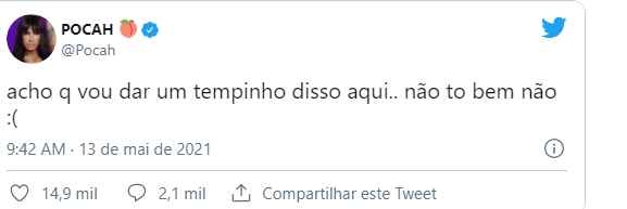Na manhã desta quinta-feira (13), a funkeira utilizou as redes sociais em uma das plataformas digitais para se despedir de seus fãs. Através do Twitter, a cantora contou que irá se afastar um pouco das redes sociais, porque não está confortável.